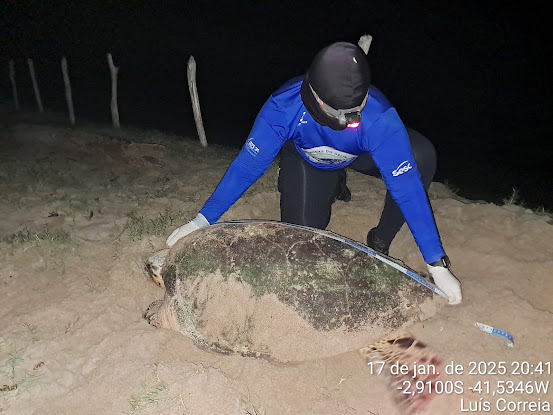 Na noite do dia 17 de janeiro uma tartaruga de pente marcada em 2019 pela equipe do Instituto Tartaruga do Delta subiu para confeccionar o ninho na praia do Arrombado em Luís Correia, Piauí.