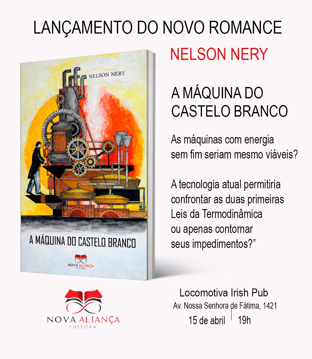 O jurista Nelson Nery Costa, presidente do Conselho Estadual de Cultura e acadêmico da Academia Piauiense de Letras Jurídicas (APLJ), lança no próximo dia 15 de abril, às 19h, em Teresina, seu novo romance, A Máquina do Castelo Branco.