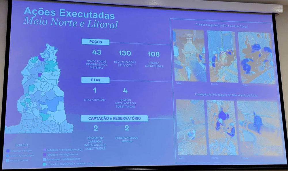 De acordo com a concessionária, a água produzida foi distribuída tanto pela rede quanto por ações emergenciais com carros-pipa, atendendo inclusive comunidades que antes não tinham acesso regular à água potável. Em municípios sem infraestrutura básica, como Marcolândia, foram instalados reservatórios móveis, com dois tanques de 70 mil litros, abastecidos por caminhões-pipa.