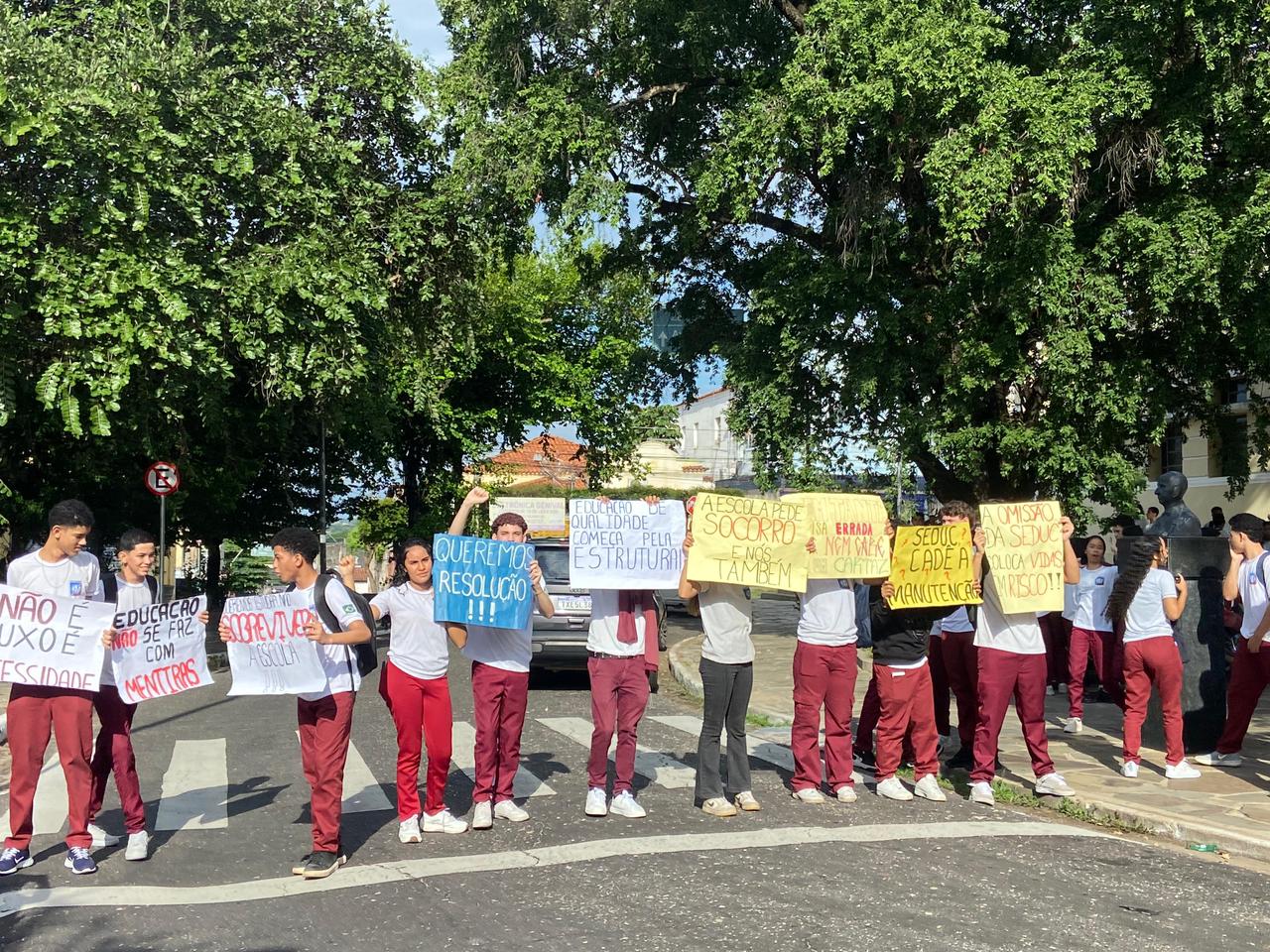 Na manhã desta segunda-feira (13), estudantes do Liceu Piauiense realizaram uma manifestação em frente à unidade de ensino, em Teresina, cobrando melhorias urgentes na estrutura física da escola.