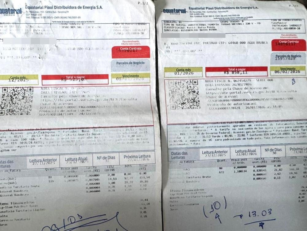 Um morador da cidade de Água Branca, identificado pelas iniciais O.S.S., vive um verdadeiro drama após ser surpreendido com valores considerados abusivos em suas contas de energia elétrica. Segundo relato, as faturas, que antes giravam entre R$ 70 e R$ 80, passaram a apresentar aumentos inesperados e sem justificativa aparente.