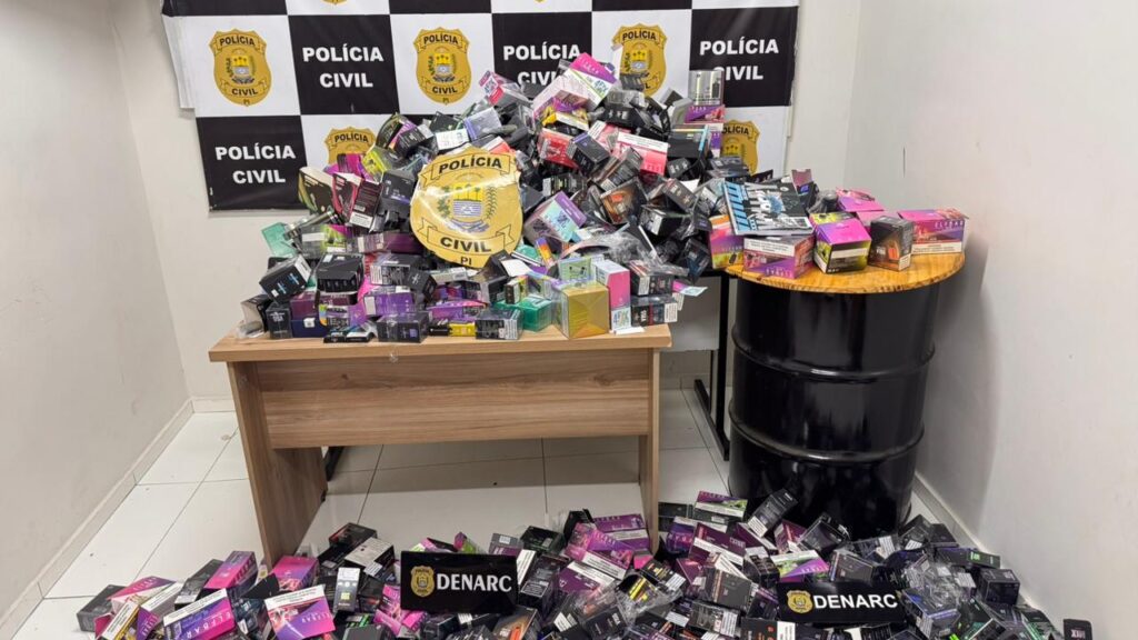 A Secretaria de Segurança Pública, por meio da Polícia Civil e Militar, na manhã desta sexta-feira (13), deflagrou, no âmbito do Pacto Pela Ordem, uma operação no bairro Ilhotas, zona sul de Teresina, que resultou na apreensão de uma grande quantidade de cigarros eletrônicos durante investigação relacionada ao tráfico de drogas.