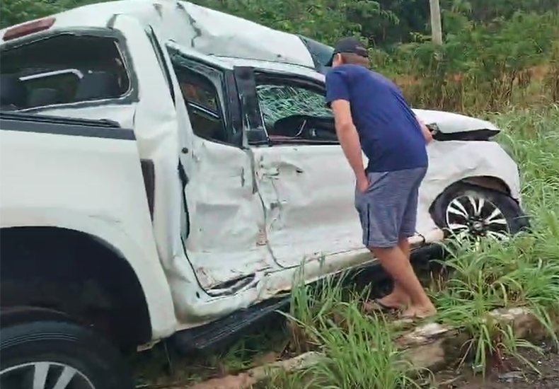 “A pessoa que faleceu estava no banco do passageiro. O motorista foi levado em estado grave pelo Samu. As informações iniciais é que estava chovendo, provavelmente, a camionete aquaplanou, perdeu o controle e bateu de lado, na frente de uma carreta que seguia em sentido contrário. O impacto maior foi na porta do lado do passageiro”, informou a PRF-BA.