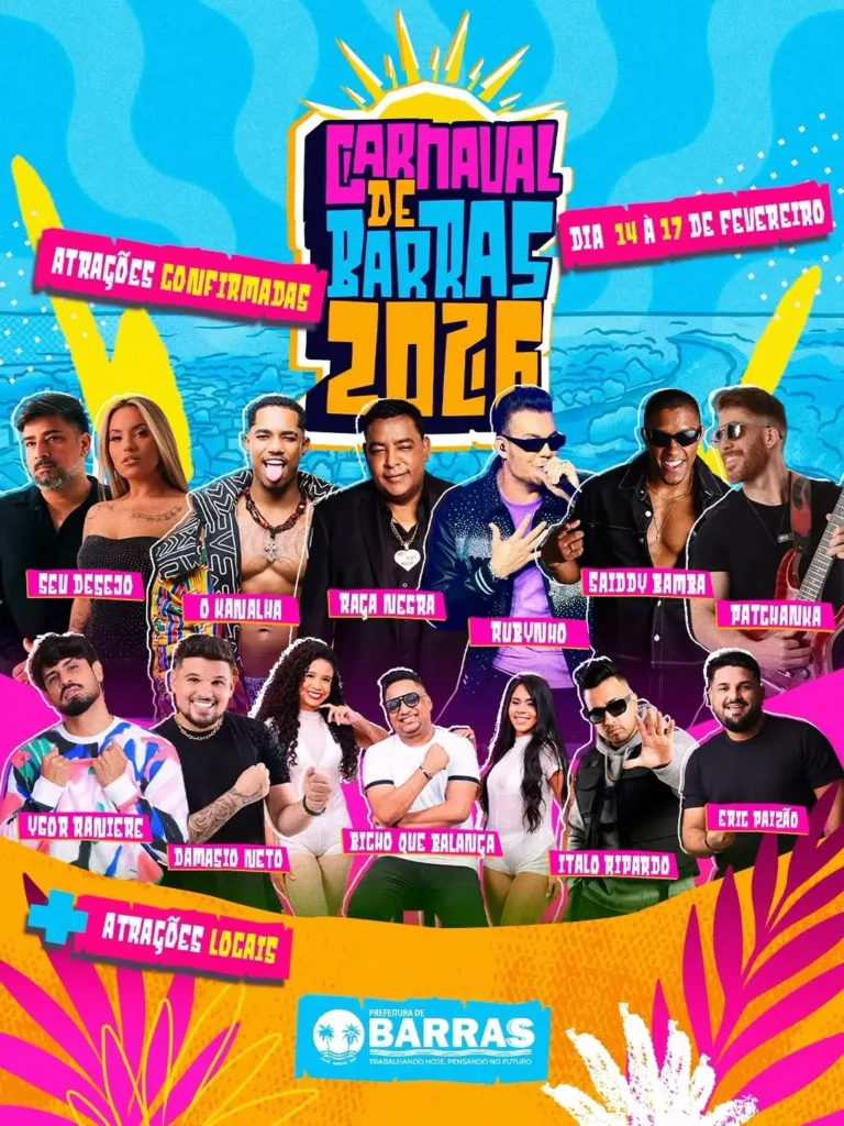 O Carnaval 2026 de Barras, que terá atrações como Seu Desejo, O Kanalha, Raça Negra, Rubynho, Saiddy Bamba e Patchanka, está sob investigação do Ministério Público do Piauí por supostas irregularidades nas despesas públicas.