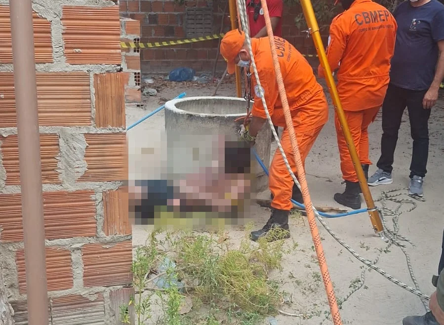 Segundo a Polícia Militar, uma vizinha acionou a guarnição após perceber que a tampa do poço estava entreaberta. Ao verificar o local, ela viu um corpo dentro da estrutura, de bruços, e comunicou o fato às autoridades.