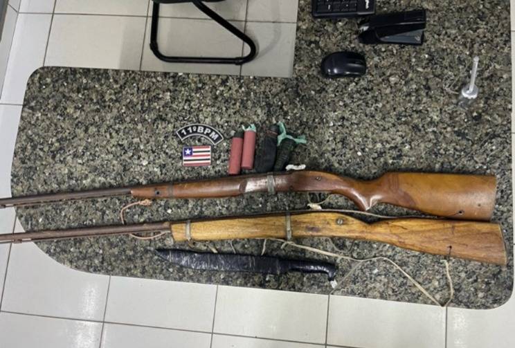 Durante a abordagem, os policiais apreenderam as armas artesanais, além de um facão, chumbo e pólvora utilizados como munição. O homem foi detido e encaminhado, com todo o material apreendido, à delegacia para os procedimentos legais.