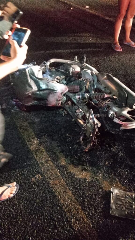 Após a colisão frontal, a motocicleta que Danilo pilotava pegou fogo e ele teve morte imediata no local.