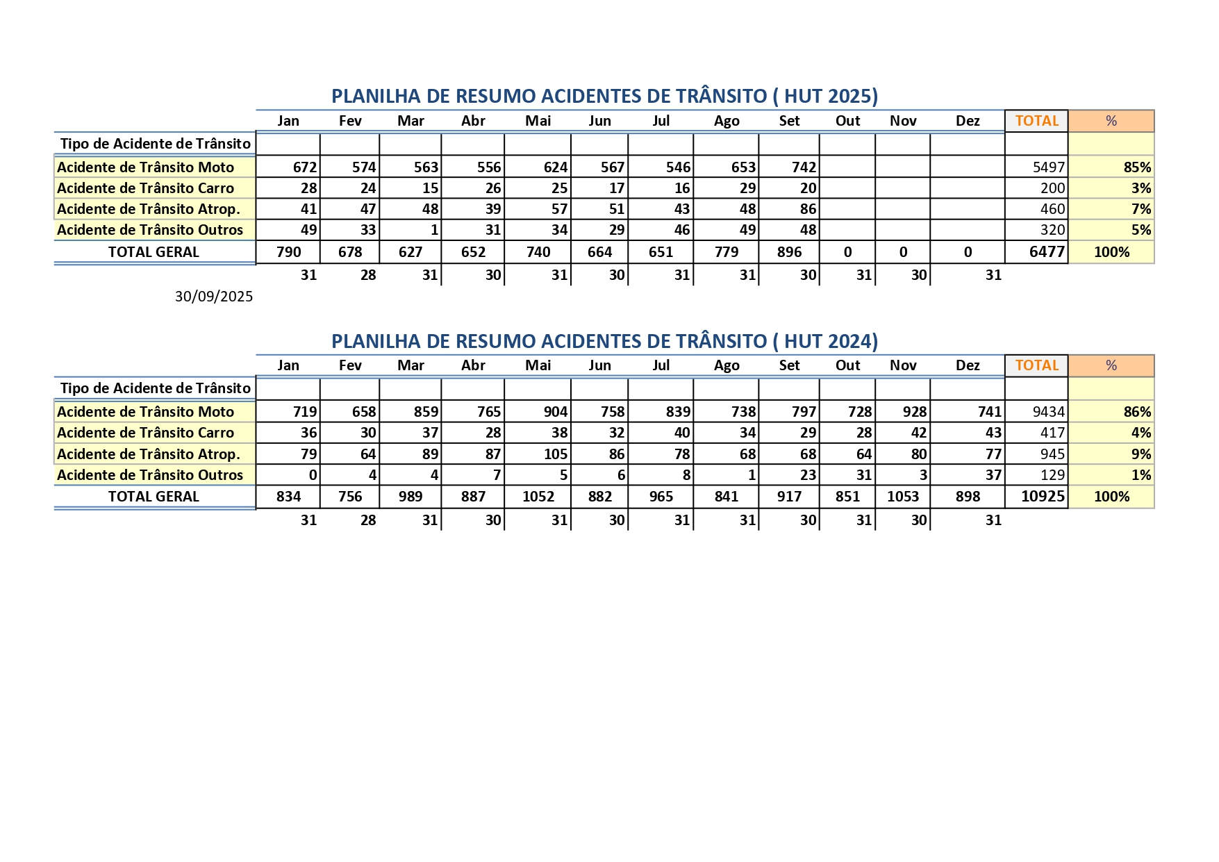 Motociclistas lideram — Mesmo com redução geral dos acidentes em 2025, 85% das vítimas atendidas no HUT continuam sendo condutores ou passageiros de motos.