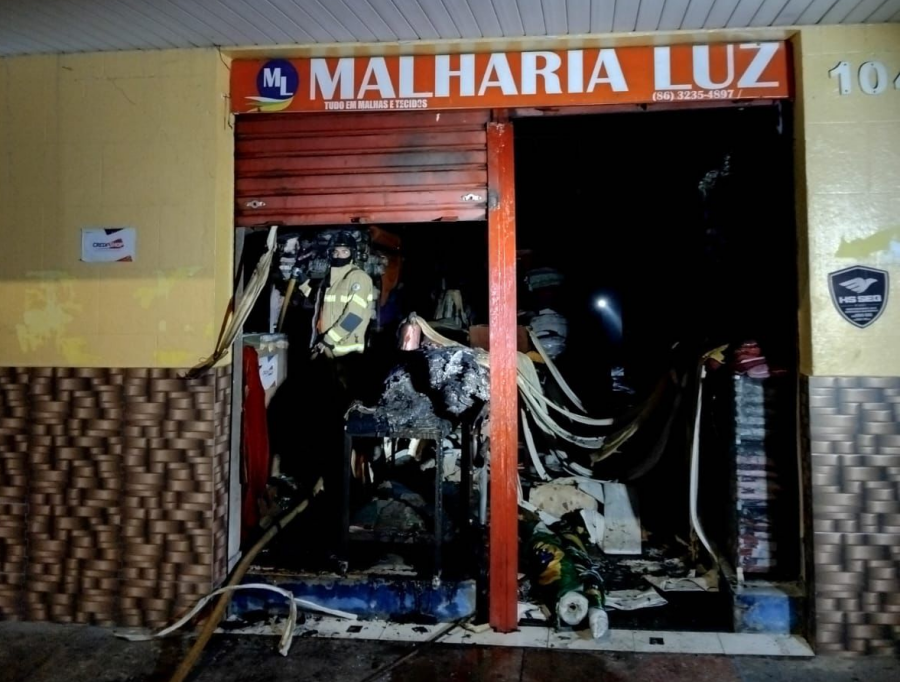 Na madrugada desta quarta-feira (1º), um incêndio consumiu totalmente a loja de tecidos Malharia Luz, localizada na Rua Lisandro Nogueira, no Centro de Teresina. Apesar da intensidade das chamas e dos prejuízos materiais, ninguém ficou ferido.