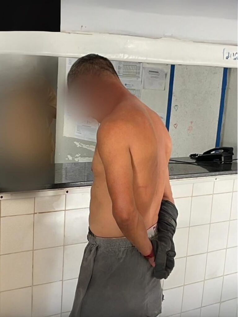 Diante dos fatos, o investigado foi preso em flagrante pela prática dos crimes de desobediência, lesão corporal contra agente de segurança e fraude processual.