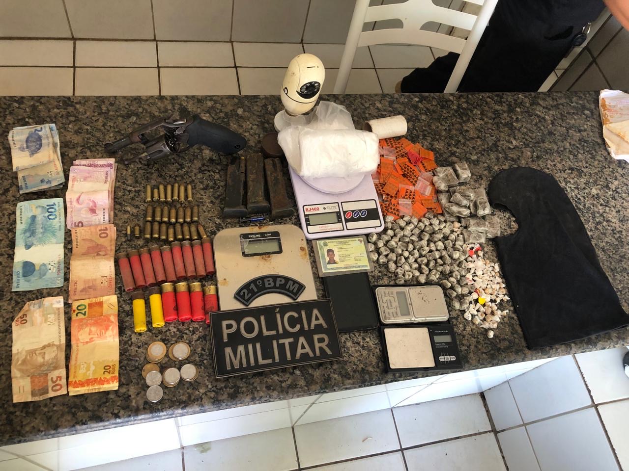 Durante buscas no interior da residência, os militares apreenderam ainda carregadores de arma, munições de diversos calibres, balanças de precisão, embalagens plásticas e cadernos com anotações que indicam o comércio de drogas. No total, foram recolhidos mais de 170 invólucros de entorpecentes.