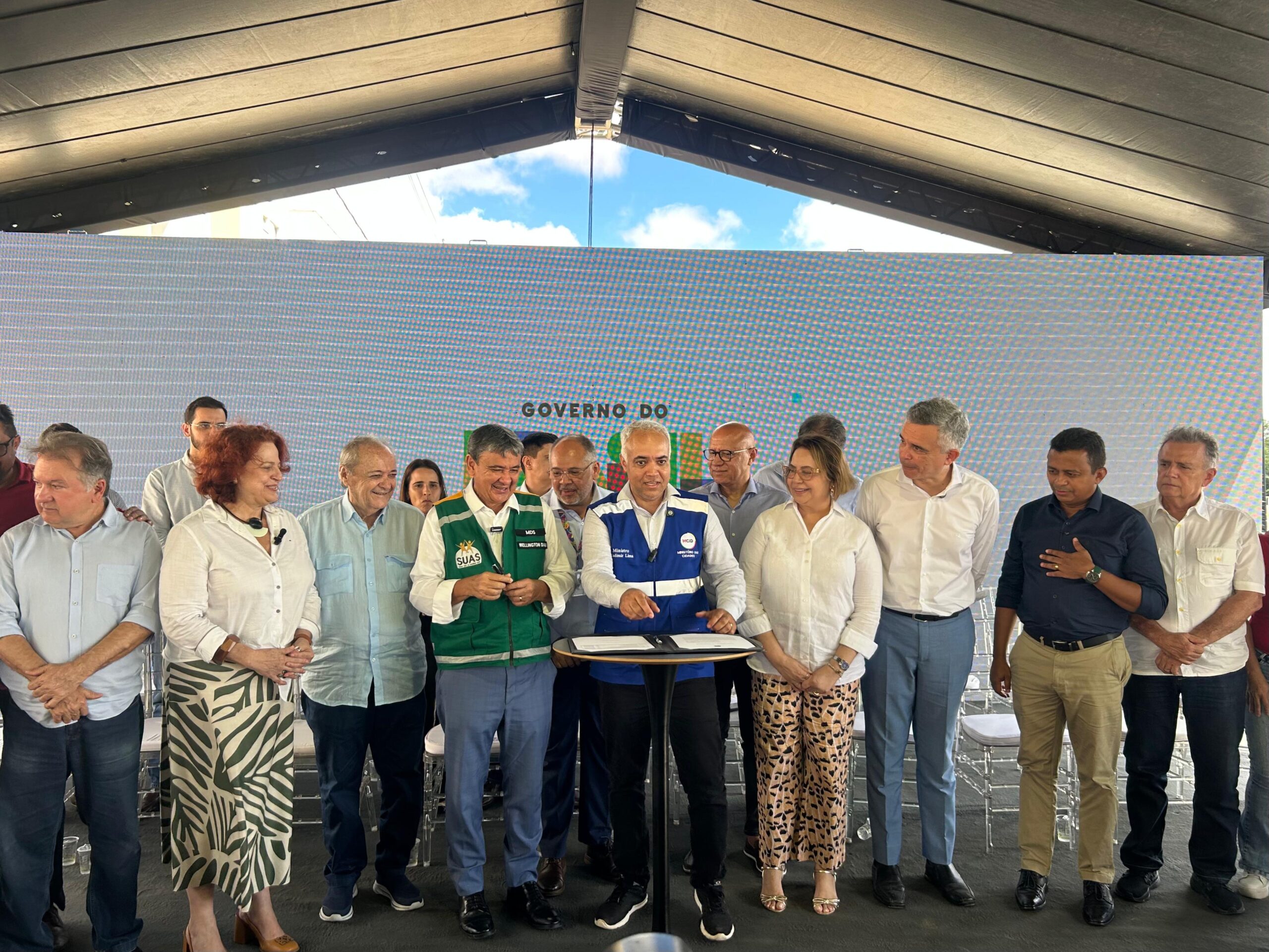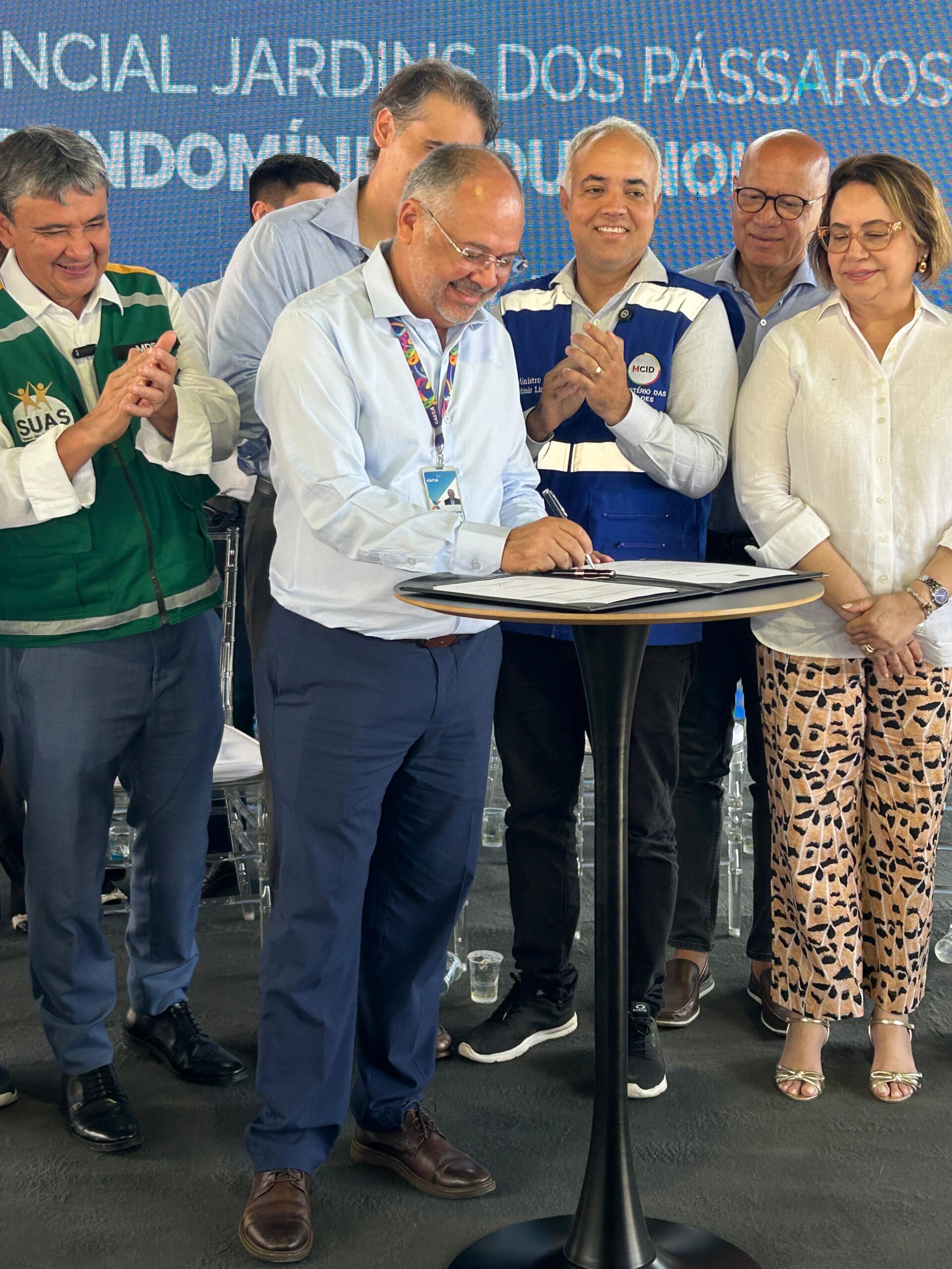 O ministro Wellington Dias e o ministro das Cidades, Vladimir Lima, realizaram nesta sexta-feira (17) uma visita técnica às obras do Residencial Santa Teresa, na zona sul de Teresina. Durante a agenda, foi assinada a contratação de 1.680 novas unidades habitacionais para a capital.