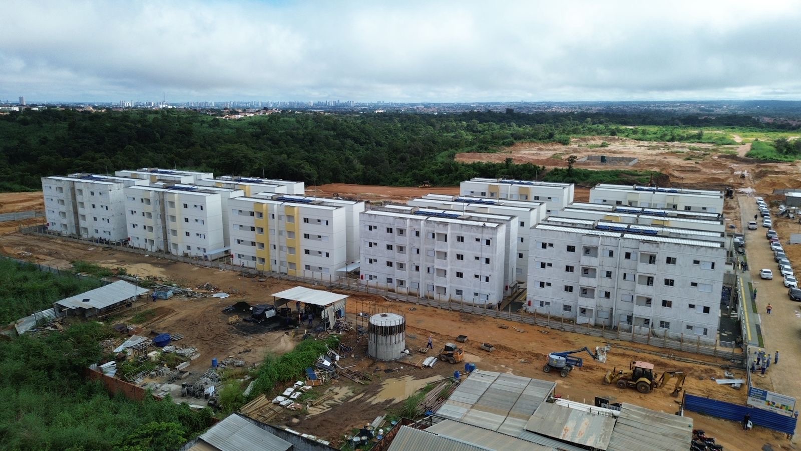 O empreendimento visitado conta com 176 apartamentos e integra a Faixa 1 do Minha Casa Minha Vida, voltada a famílias de baixa renda. As unidades estão em fase avançada de conclusão, com previsão de entrega próxima.
