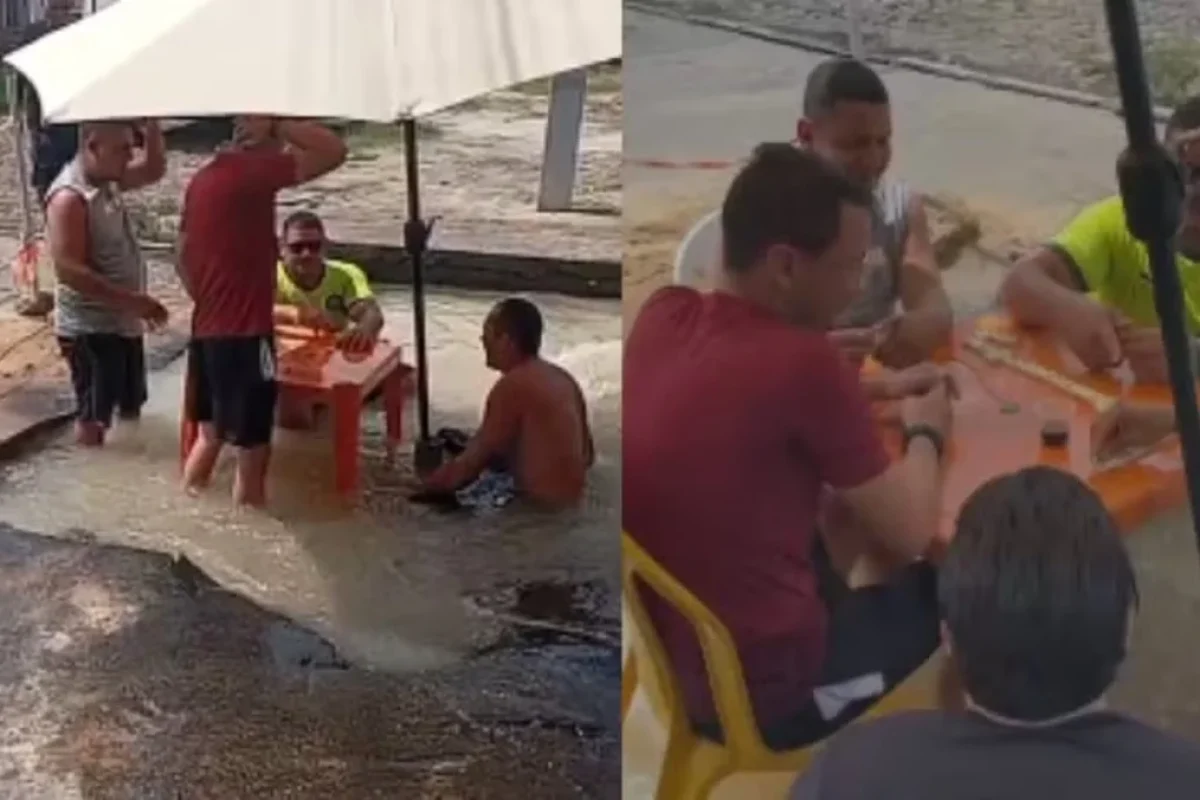 Moradores do bairro Dirceu II, na Zona Sudeste de Teresina, usaram o humor para protestar contra uma cratera aberta após o rompimento de uma tubulação. O protesto ocorreu na manhã de domingo (12), quando o buraco virou cenário de lazer improvisado, com mesa, cadeiras, guarda-sol, dominó e até cerveja.