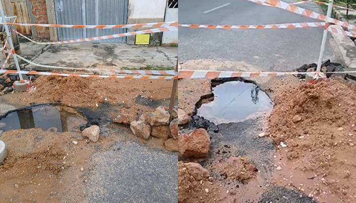 O problema teria surgido durante um serviço de manutenção na rede de abastecimento de água. Apesar da correção do vazamento, a via não foi totalmente recuperada, permanecendo com o buraco aberto.