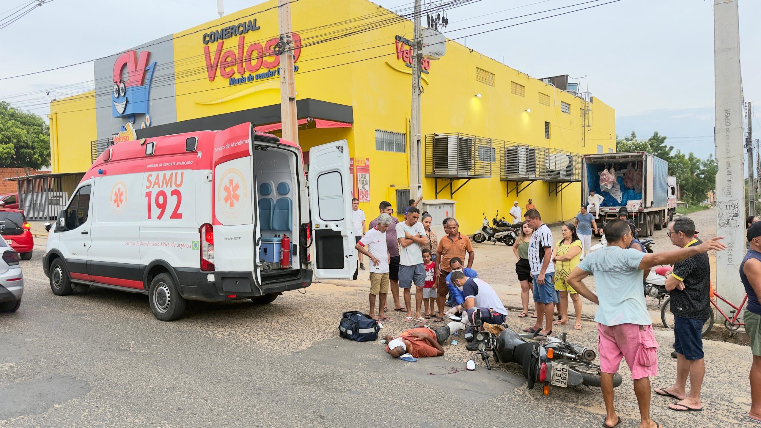 Um motociclista identificado como sargento Anias, militar aposentado, ficou ferido após uma colisão registrada na tarde desta segunda-feira (16) na Avenida Manoel Aires Neto, no bairro Vamos Ver o Sol, zona Sul de Teresina.