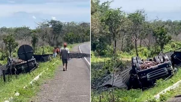 O acidente aconteceu por volta das 10h50, no quilômetro 98 da rodovia. De acordo com a PRF, o caminhão transportava carvão vegetal . Parte da carga se espalhou pela pista.