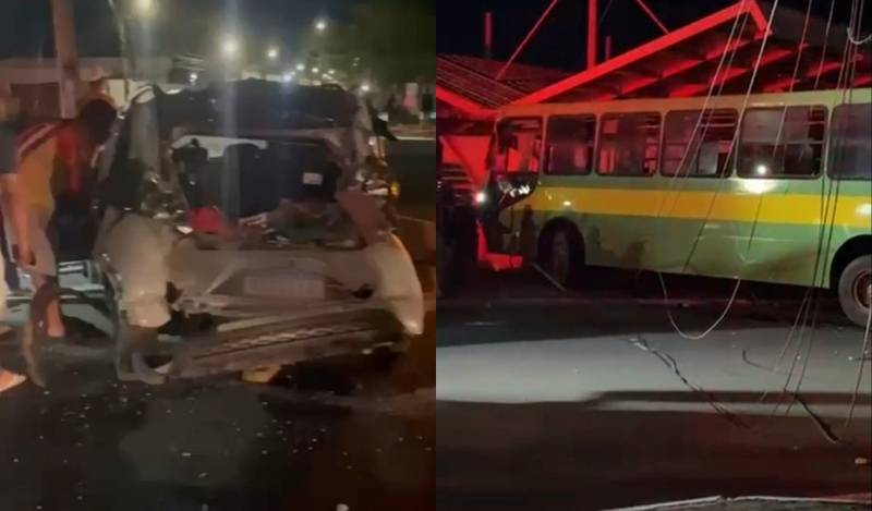 Um ônibus saiu de controle e se envolveu em um acidente na noite desta sexta-feira (13), em um cruzamento movimentado da Avenida Duque de Caxias, na zona Norte de Teresina. O coletivo atingiu um carro que aguardava no semáforo e acabou avançando até a área do Terminal do Buenos Aires.