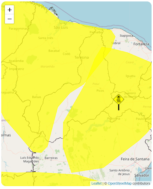 O Instituto Nacional de Meteorologia (INMET) emitiu um alerta de “Perigo Potencial” para chuvas intensas em Teresina e mais 111 municípios do Piauí. O aviso começou nesta quinta-feira (12) às 10h e segue até sexta-feira (13) no mesmo horário. Segundo o órgão, a previsão é de chuvas com acumulados entre 20 e 30 mm/h ou até 50 mm/dia, acompanhadas de ventos fortes, com velocidades entre 40 e 60 km/h. Apesar de ser considerado um alerta de menor gravidade, há riscos de alagamentos, queda de galhos de árvores, cortes no fornecimento de energia e descargas elétricas.