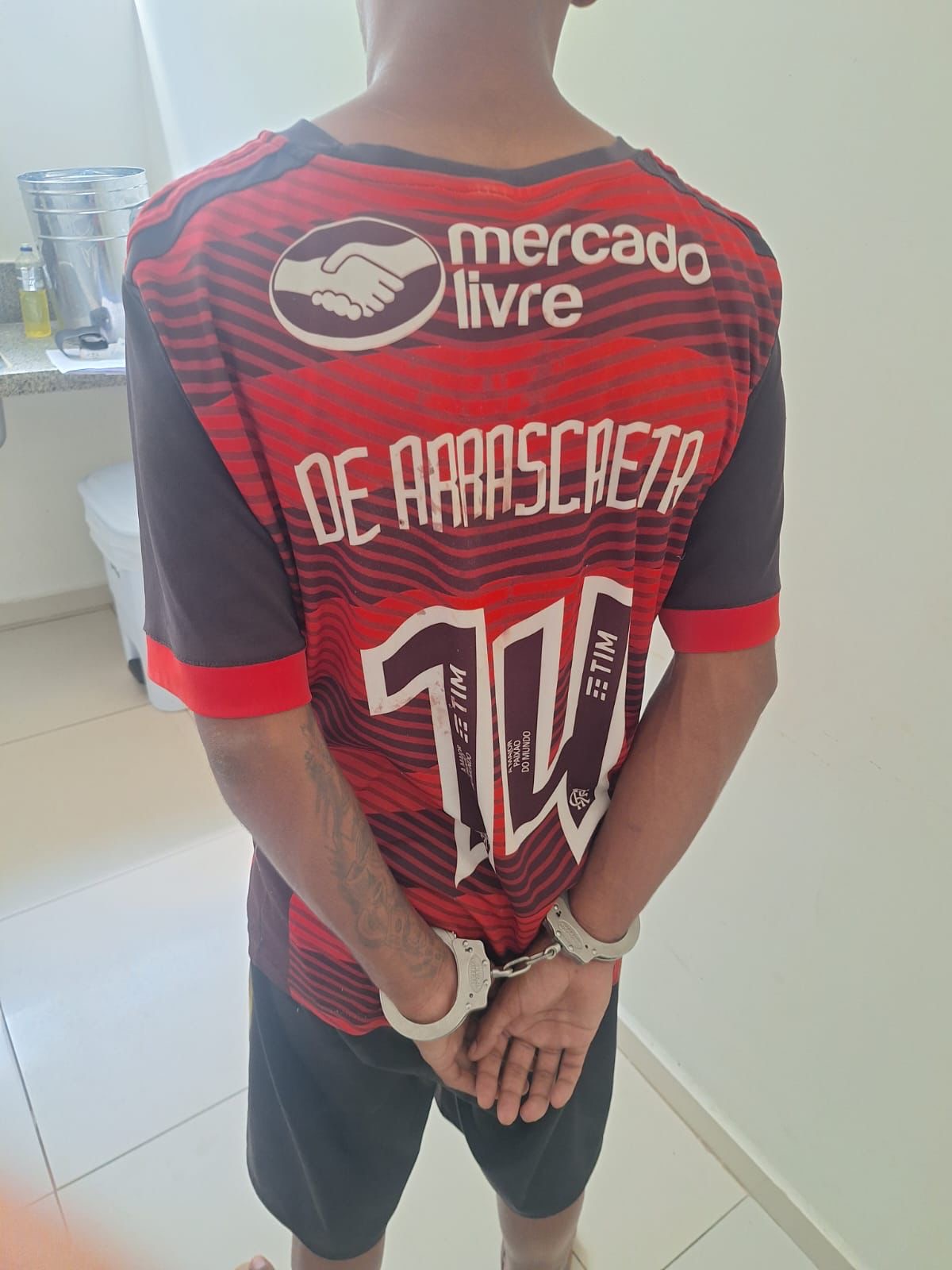 Segundo a PM, o suspeito, identificado pelas iniciais L. L. C., foi visto sentado em uma cadeira durante rondas na região. Ao perceber a aproximação da viatura, ele se levantou rapidamente, mantendo a mão na cintura, e tentou fugir para dentro de uma casa abandonada, desobedecendo às ordens dos policiais. Na fuga, colidiu com uma parede e sofreu ferimentos leves na orelha e nos pés.