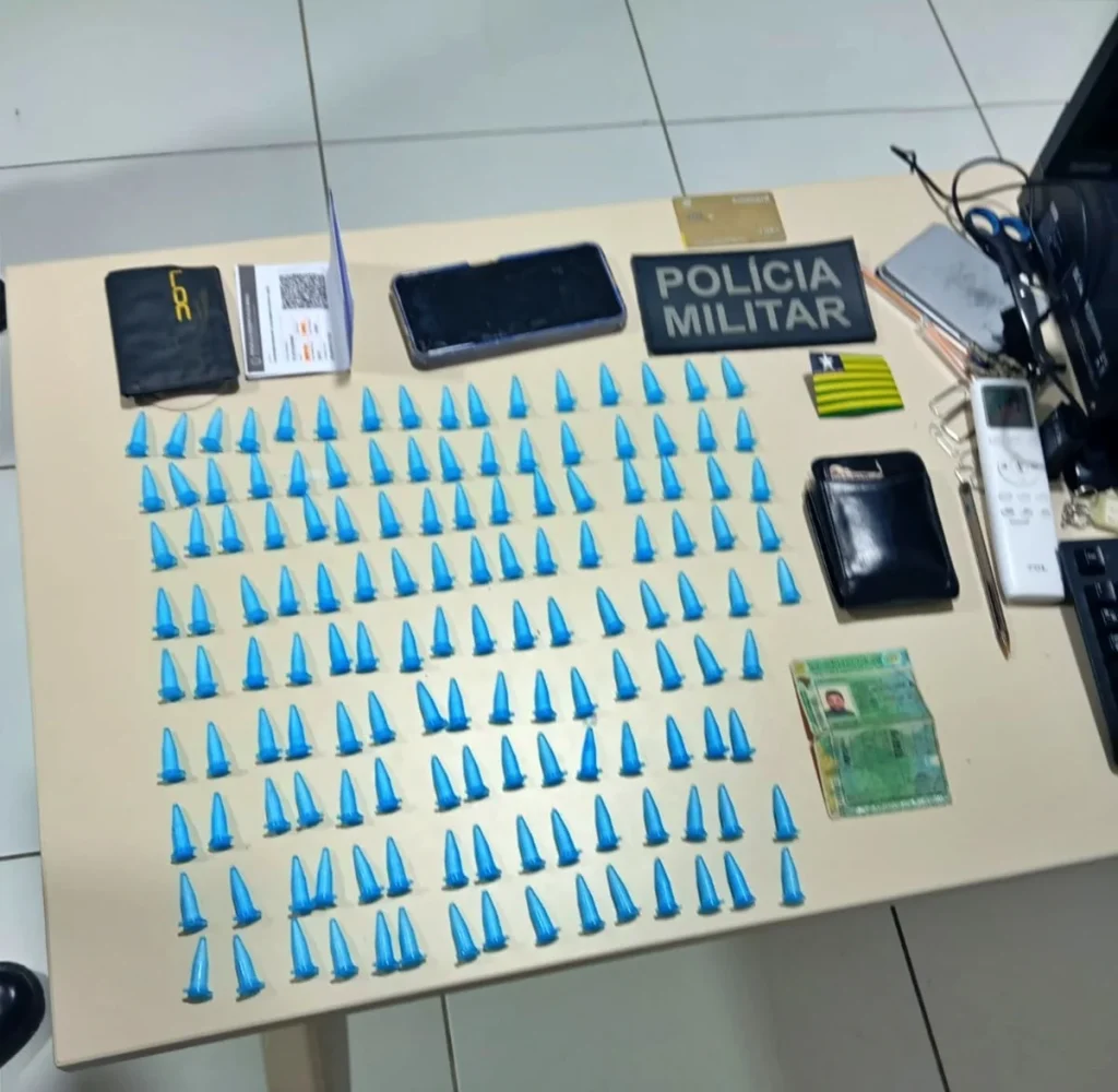 Durante a abordagem, foram encontradas duas cápsulas contendo substância análoga à cocaína no bolso do suspeito, identificado pelas iniciais J.C.M.. Após busca minuciosa no interior do veículo, os policiais localizaram mais 138 invólucros da mesma substância escondidos sob o banco do condutor, totalizando 140 cápsulas apreendidas.