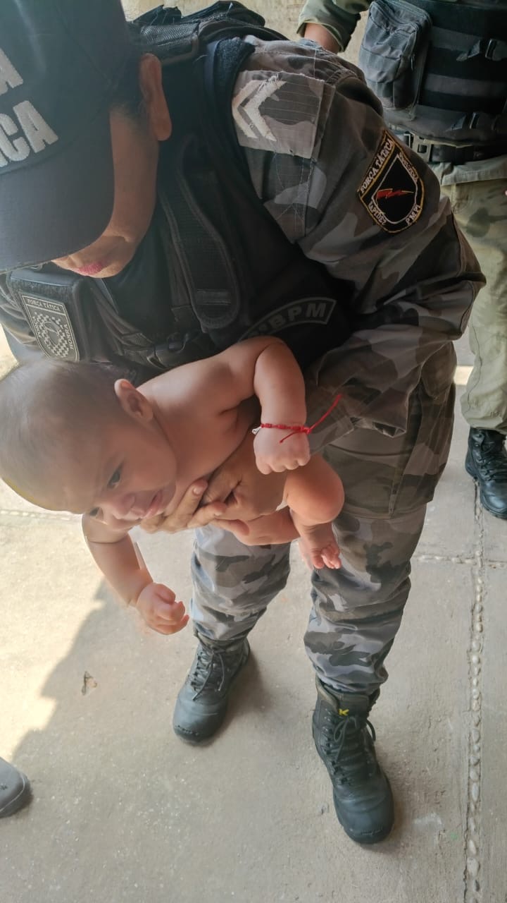 De acordo com a corporação, a guarnição retornava de uma operação na região quando foi abordada por uma família em estado de desespero. Os pais informaram que o bebê, identificado como Marcos Benício, apresentava sinais de sufocamento e coloração arroxeada, indicando dificuldade respiratória grave.