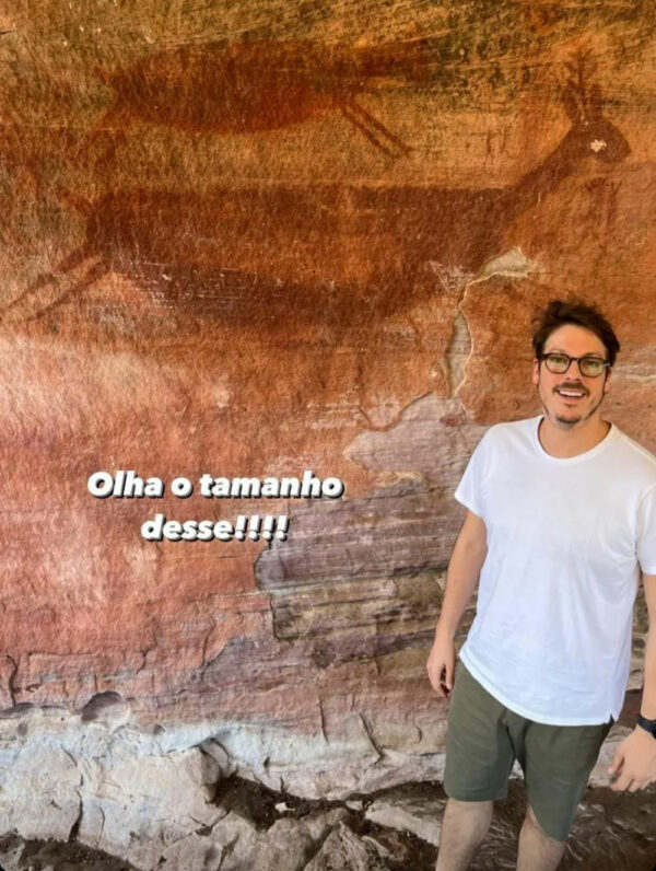 “O beijo que é algo tão importante na vida. Que sensacional, gente. Isso é de uma grandeza, é de uma riqueza e está lá”, disse o presidente da Embratur, que postou: “A Serra da Capivara é um dos lugares mais incríveis do mundo. E tá aqui pertinho da gente, no interior do Piauí. O Brasil é fantástico e é cheio de paisagens pra gente conhecer. Viajar pelo nosso país é maravilhoso”.