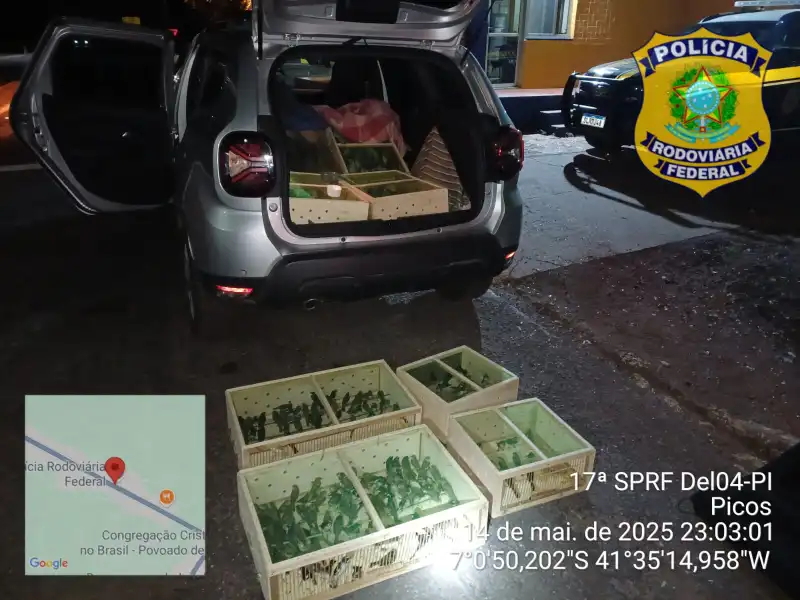 Em operação noturna na BR-316, em Picos (PI), a Polícia Rodoviária Federal (PRF) interceptou na quarta-feira (14) um veículo transportando cerca de 300 aves silvestres de forma ilegal. A ação ocorreu por volta das 22h durante fiscalização de rotina.