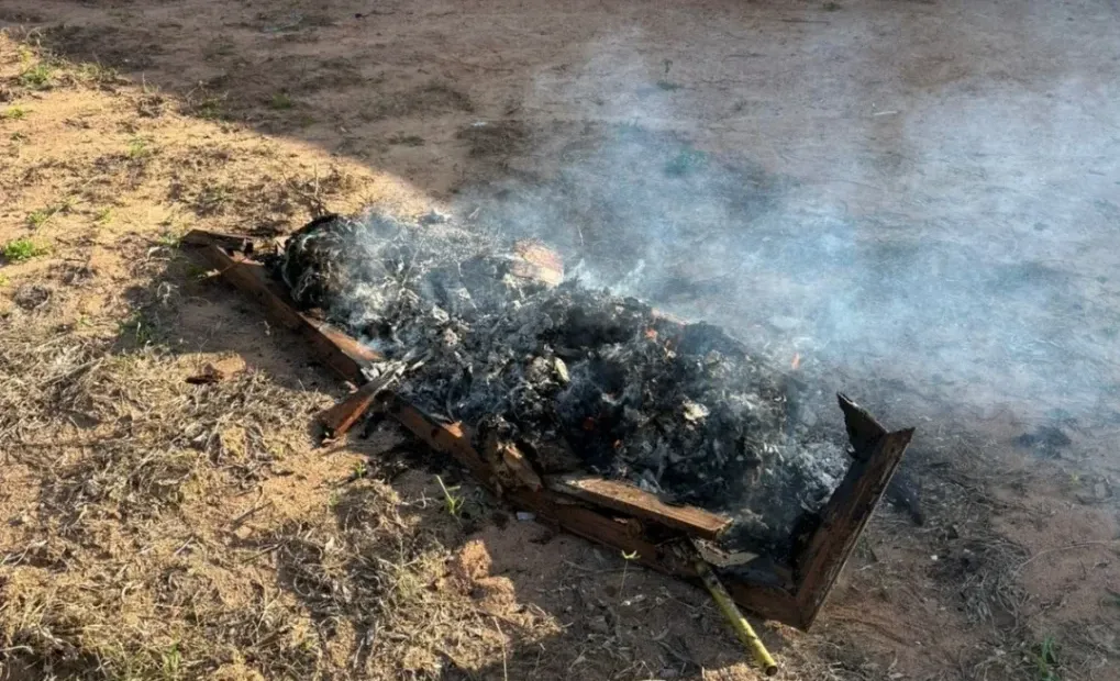 A ocorrência foi registrada em área próxima a um cemitério localizado ao lado da unidade da PRF. Segundo informações, um colaborador da base percebeu fogo e fumaça no local e acionou a equipe. Durante a verificação, os agentes encontraram cinzas e resíduos que, de forma preliminar, indicam tratar-se de um possível caixão.