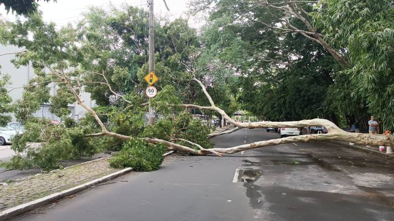 Segundo informações iniciais, o tronco atingiu a rede elétrica durante a queda, o que agravou a situação e exigiu atenção redobrada das equipes no local. Por conta disso, as duas pistas da avenida foram afetadas, e apenas uma faixa no sentido Norte/Sul permanece liberada.