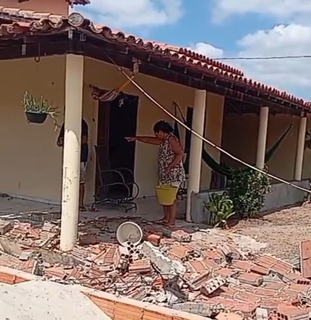 De acordo com informações divulgadas em um vídeo publicado por um internauta nas redes sociais, o vendaval se formou no quintal de uma das residências e derrubou um muro de tijolos vazados, que acabou caindo sobre um veículo estacionado na garagem da casa ao lado. A estrutura de um portão também foi parcialmente destruída pela força do vento.