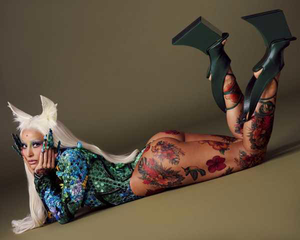 Para completar o visual, Sabrina usou uma peruca assinada pela Jean Baptiste, marca internacional conhecida por criações sob medida no universo da hair couture. A etiqueta é referência em wigs de alta performance, frequentemente presentes em editoriais de moda, tapetes vermelhos e produções de fantasia, destacando-se pelo acabamento artesanal.