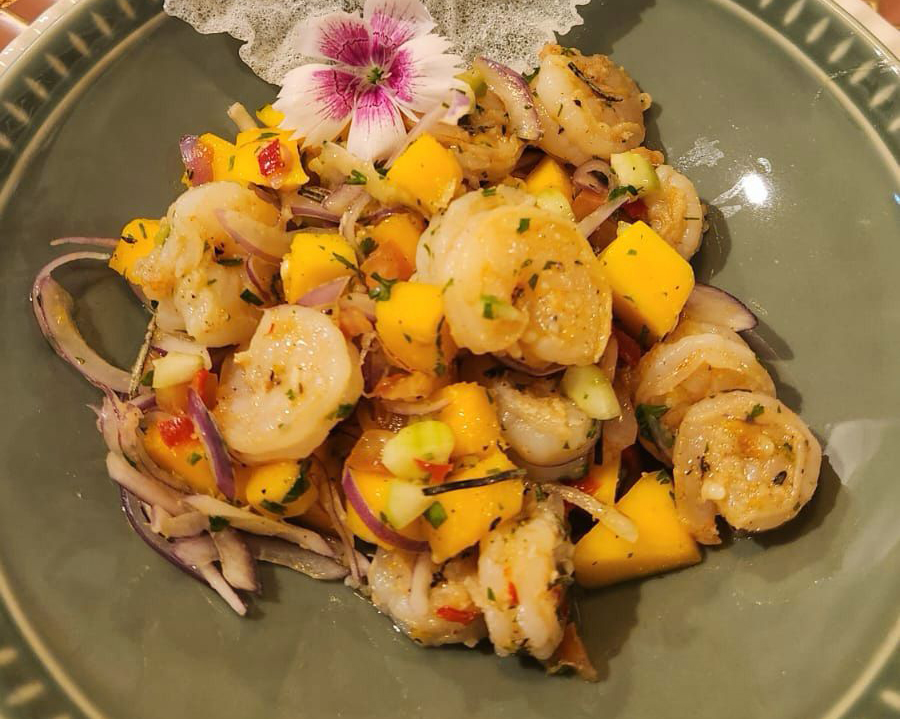 Confira a receita da sala de camarão e manga elaborada por Amandha Silveira