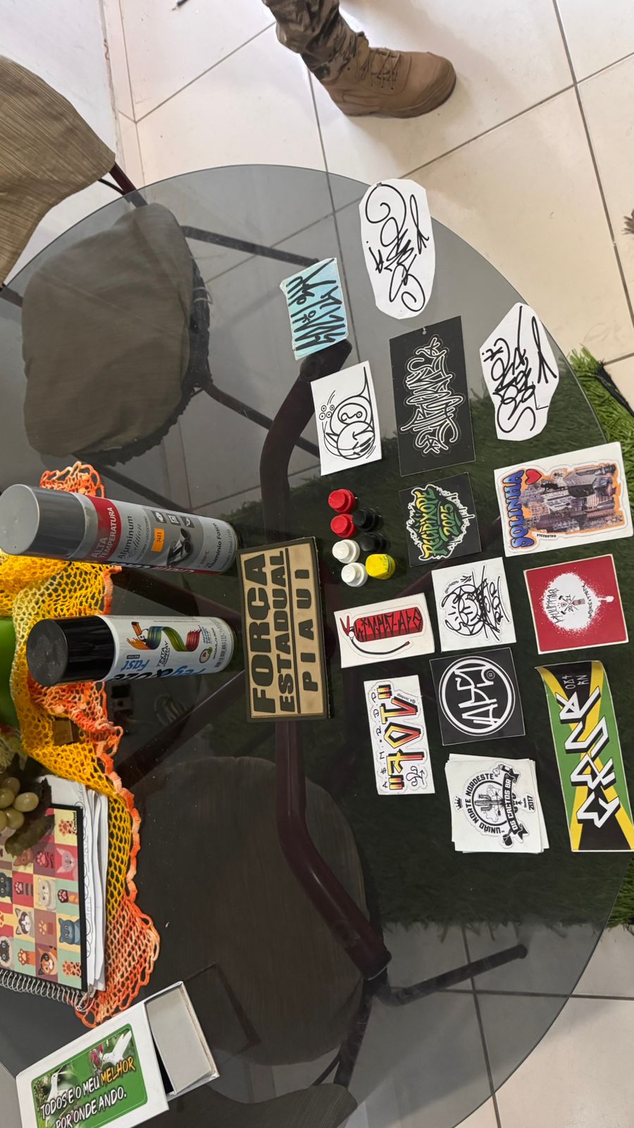 Durante a ação, foram apreendidos materiais utilizados nas pichações, como tintas e sprays.