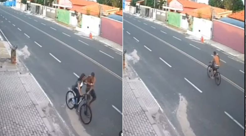 O crime aconteceu no dia 25 de março e foi registrado por câmeras de segurança, que flagraram toda a ação. As imagens mostram o momento em que a vítima, que pedalava pela Rua Desembargador Freitas, no bairro Nova Parnaíba, é surpreendida pelo suspeito.